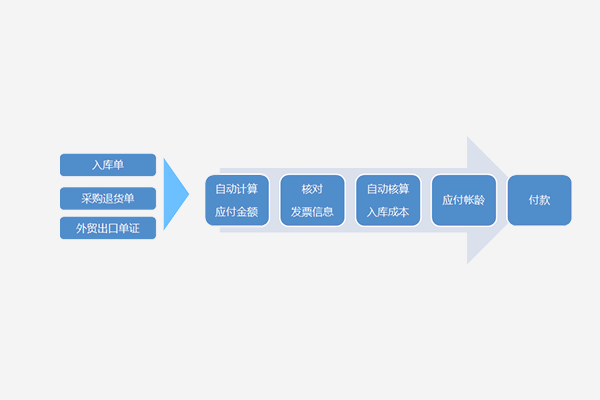 按照采購(gòu)到貨自動(dòng)計(jì)算應(yīng)付款,稅額,費(fèi)用等,核對(duì)發(fā)票信息,并自動(dòng)核算入庫(kù)成本和應(yīng)付帳齡,做好付款準(zhǔn)備,按計(jì)劃付款。